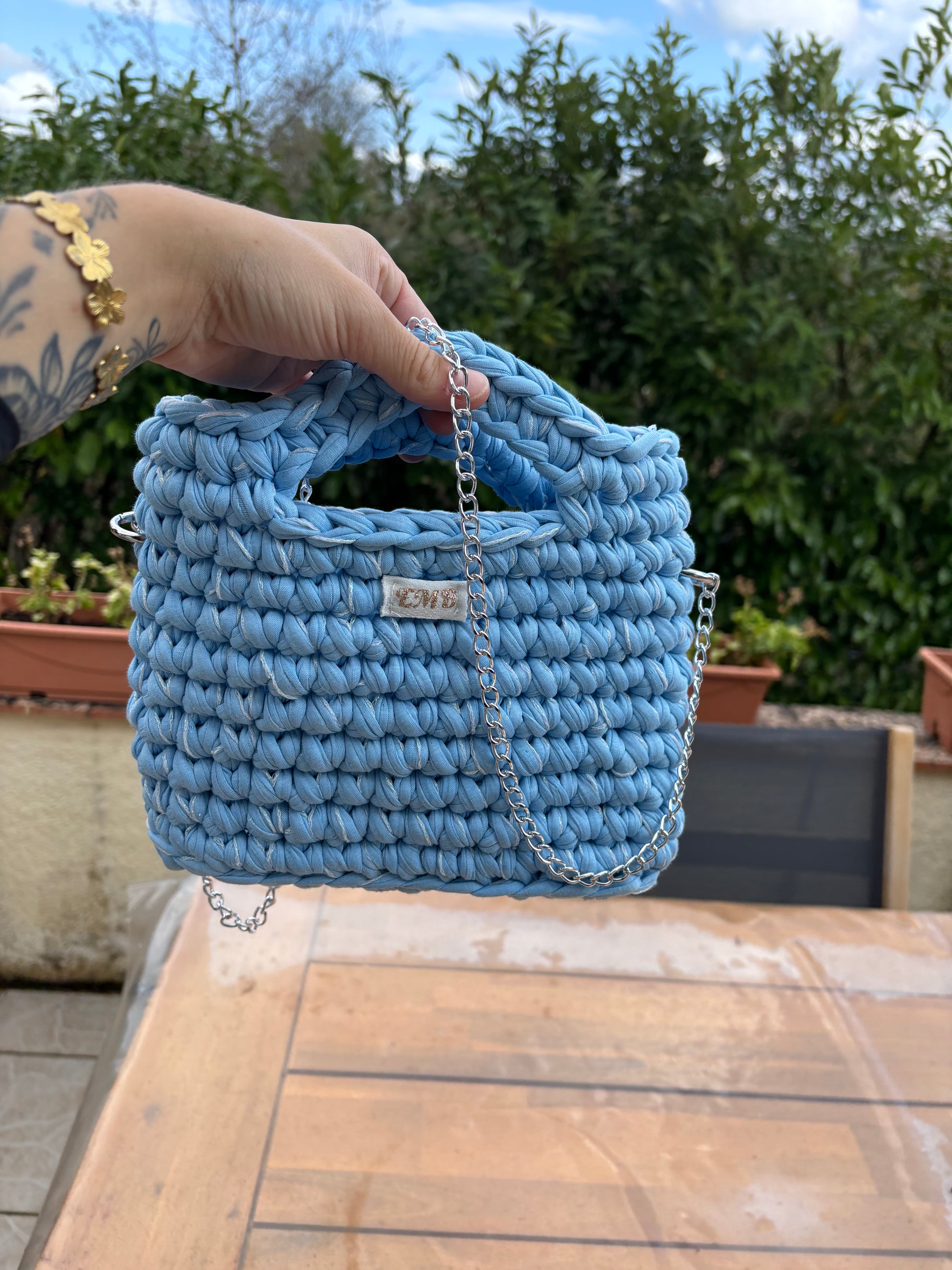 Sac en crochet (bleu/blanc)