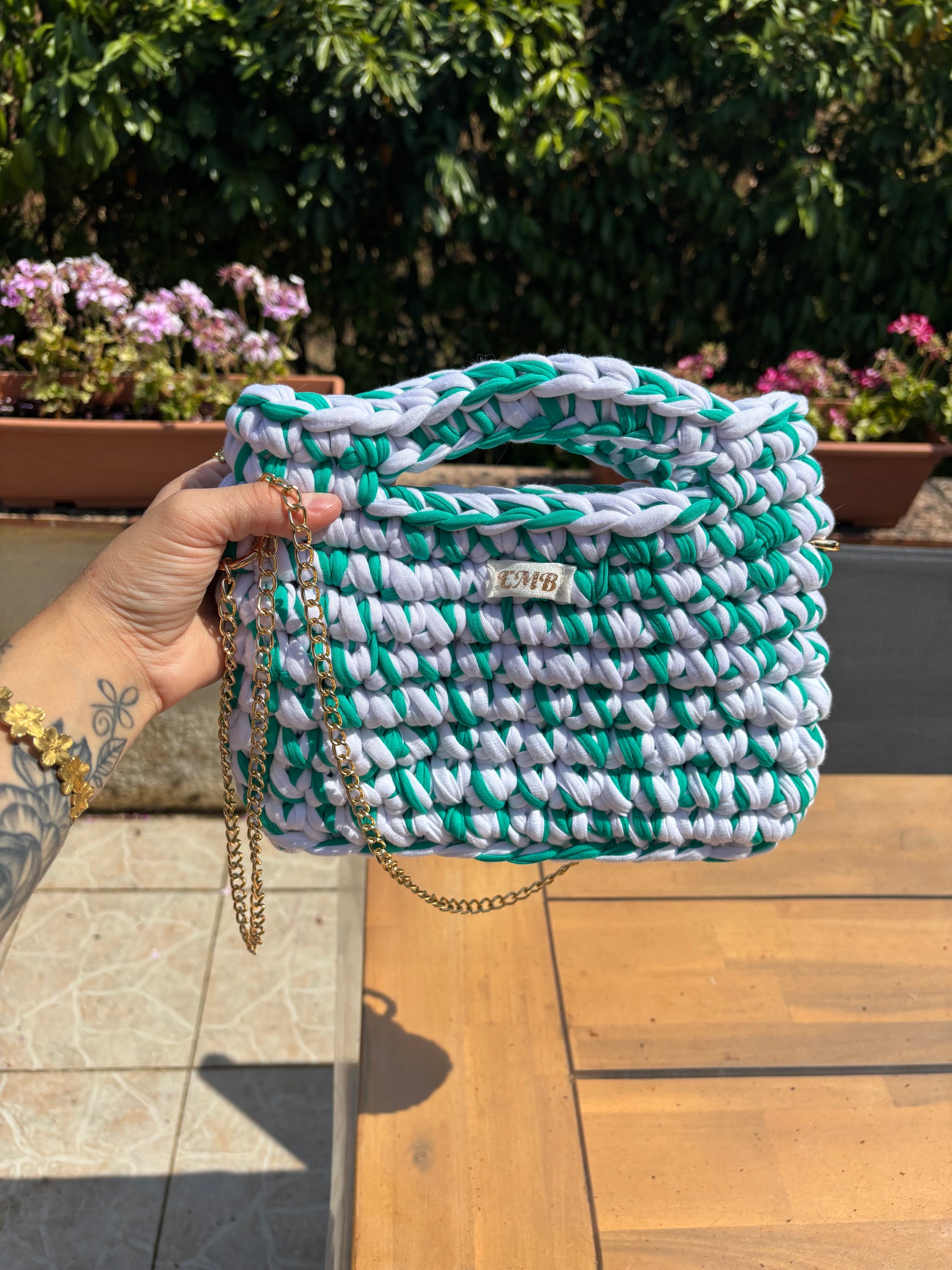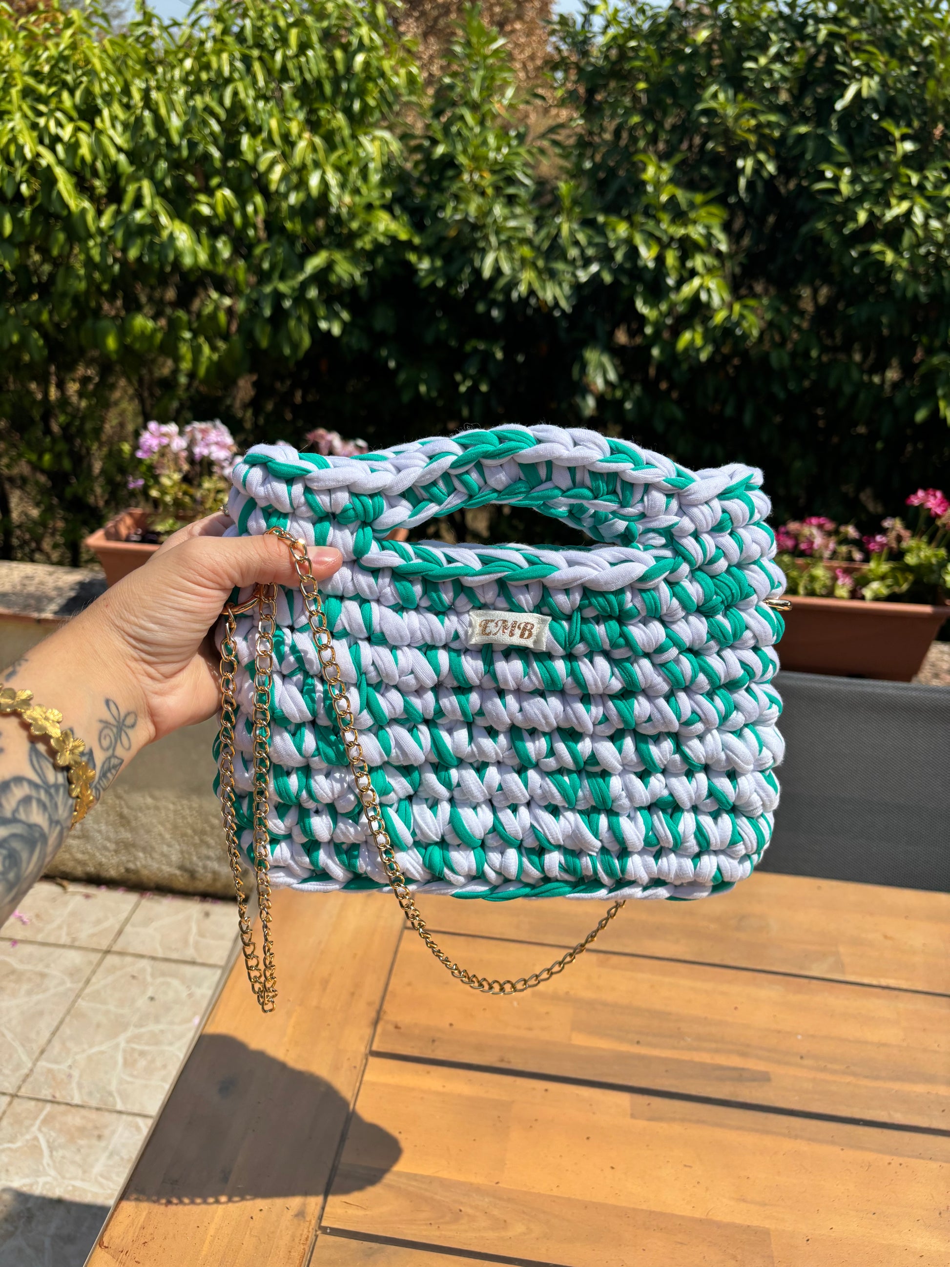 Sac en crochet (blanc/vert)